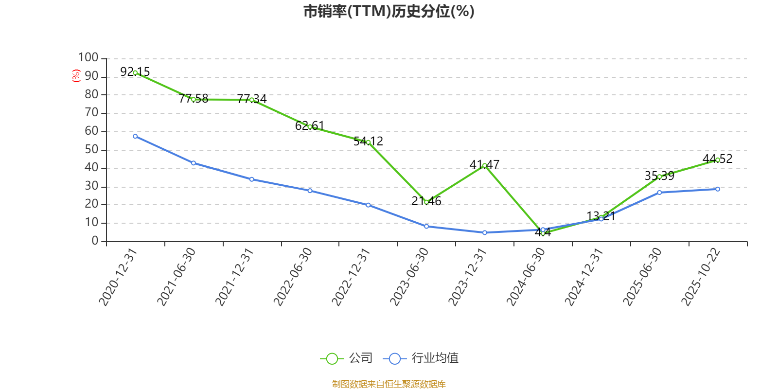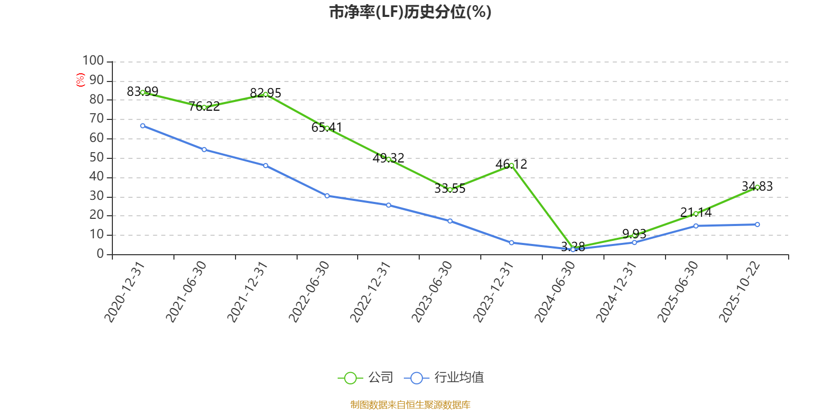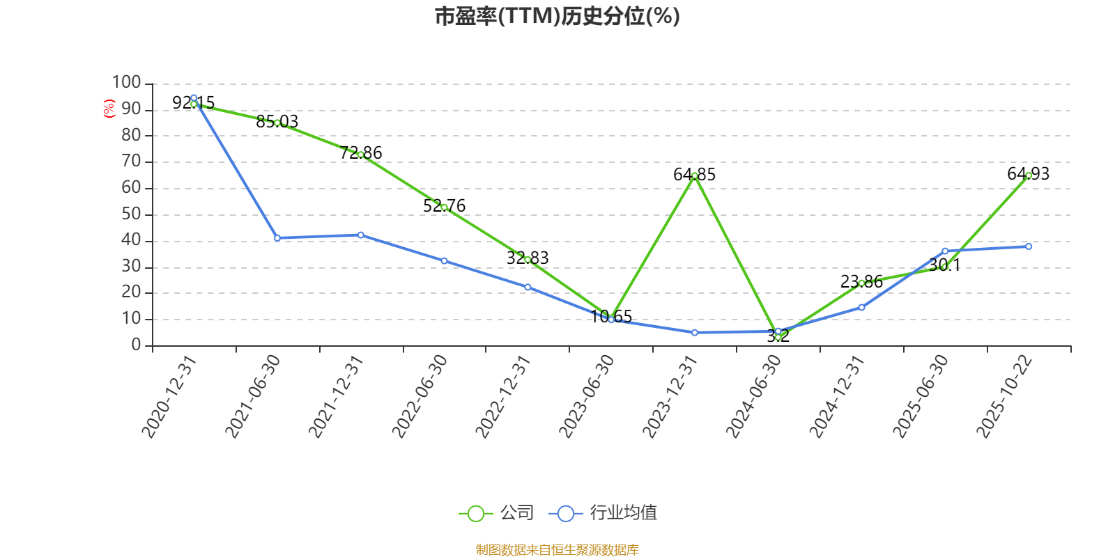 市盈率、市净率为负时,不显示当期分位数,会导致折线图中断。