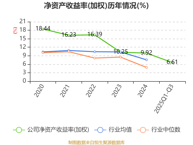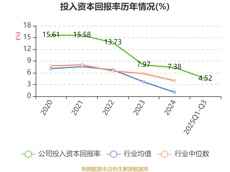 盈利能力方面, 2025年前三季度公司加权平均净资产收益率为6.61%,同比下降0.91个百分点。公司2025年前三季度投入资本回报率为4.52%,较上年同期下降0.87个百分点。