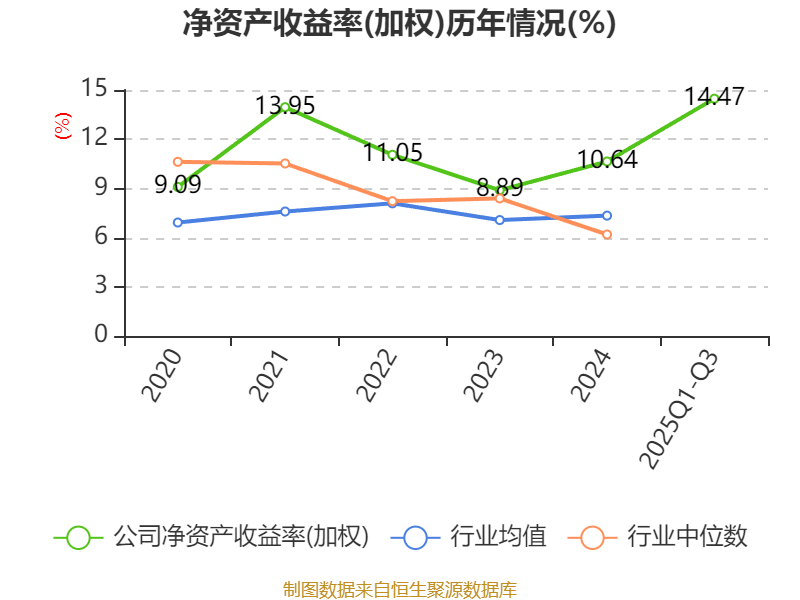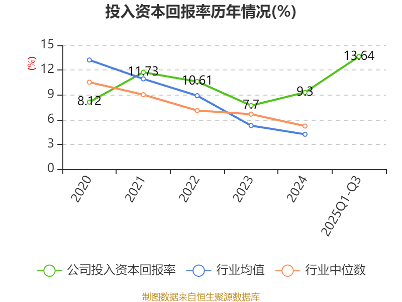 盈利能力方面, 2025年前三季度公司加权平均净资产收益率为14.47%。公司2025年前三季度投入资本回报率为13.64%,较上年同期上升6.44个百分点。