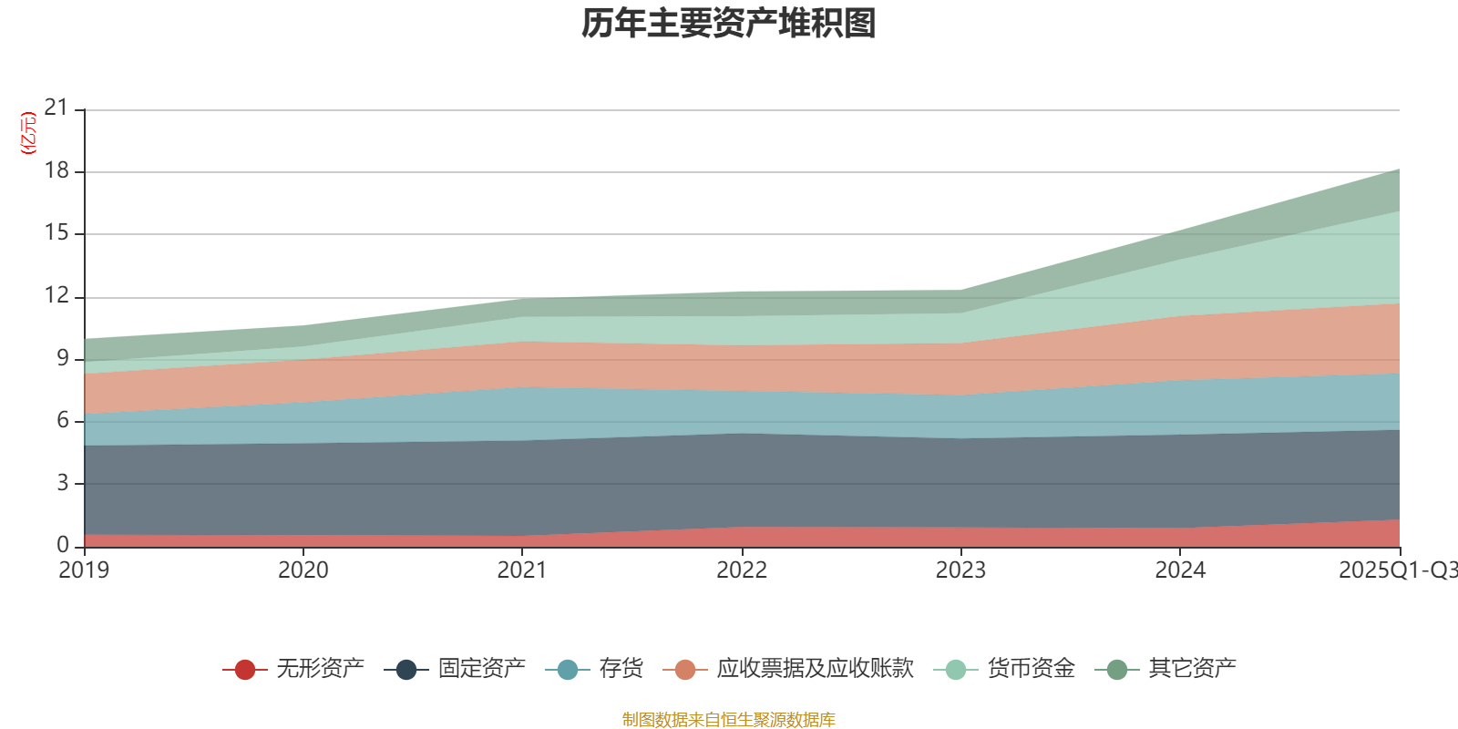 资产重大变化方面,截至2025年三季度末,公司货币资金较上年末增加63.01%,占公司总资产比重上升6.52个百分点;固定资产较上年末减少3.86%,占公司总资产比重下降5.75个百分点;存货较上年末增加3.81%,占公司总资产比重下降2.25个百分点;应收票据及应收账款较上年末增加8.93%,占公司总资产比重下降1.78个百分点。