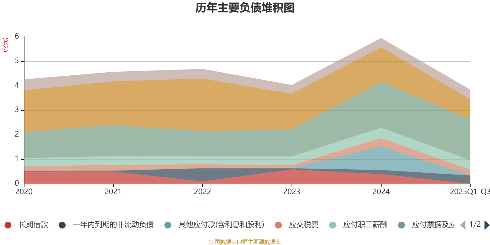 负债重大变化方面,截至2025年三季度末,公司其他应付款(含利息和股利)较上年末减少99.41%,占公司总资产比重下降6.37个百分点;短期借款较上年末减少42.51%,占公司总资产比重下降4.83个百分点;应付票据及应付账款较上年末减少10.91%,占公司总资产比重下降3.13个百分点;长期借款较上年末减少100%,占公司总资产比重下降2.59个百分点。