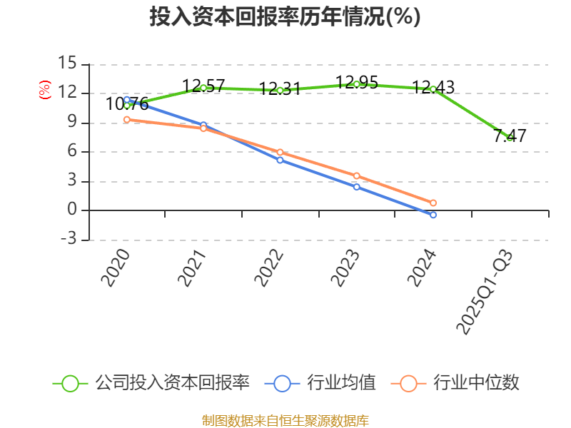 盈利能力方面, 2025年前三季度公司加权平均净资产收益率为7.62%,同比下降3.28个百分点。公司2025年前三季度投入资本回报率为7.47%,较上年同期下降3.03个百分点。