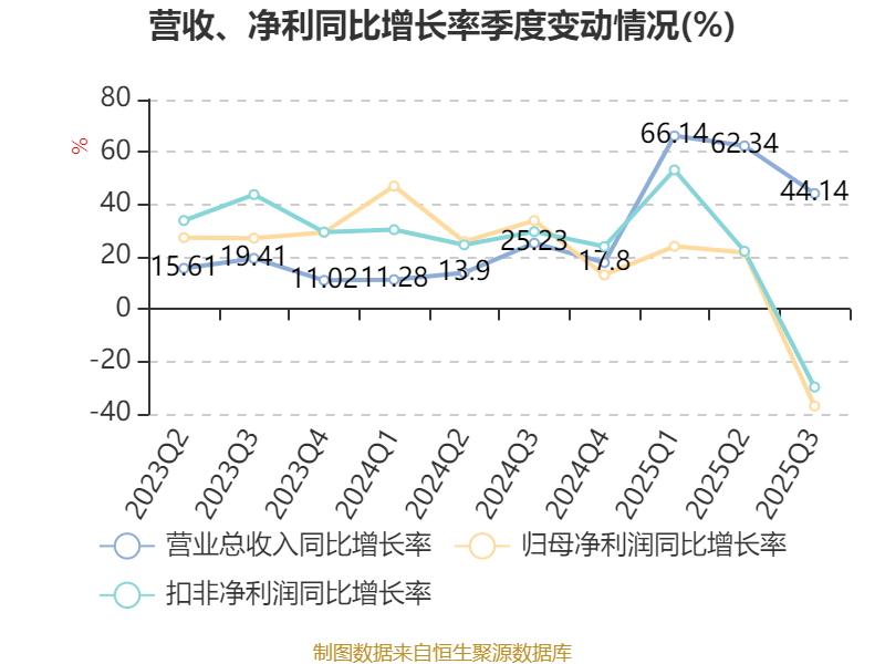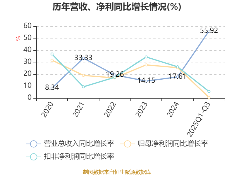 资产重大变化方面,截至2025年三季度末,公司货币资金较上年末减少28.66%,占公司总资产比重下降8.15个百分点;固定资产较上年末增加148.39%,占公司总资产比重上升7.65个百分点;交易性金融资产合计较上年末减少76.56%,占公司总资产比重下降6.14个百分点;其他非流动资产较上年末减少60.06%,占公司总资产比重下降4.33个百分点。