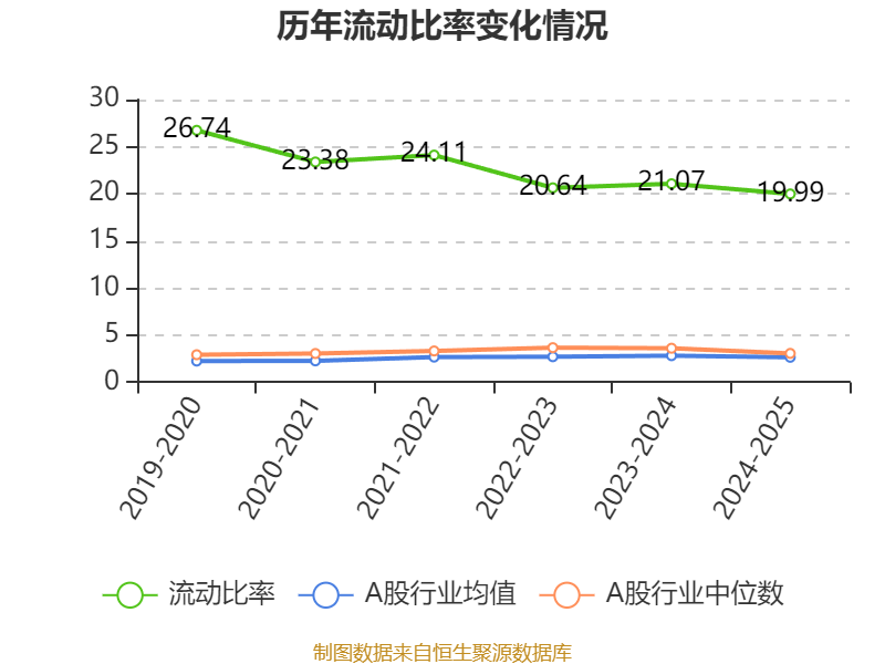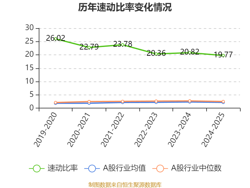 报告期内,公司流动比率为19.99,速动比率为19.77。