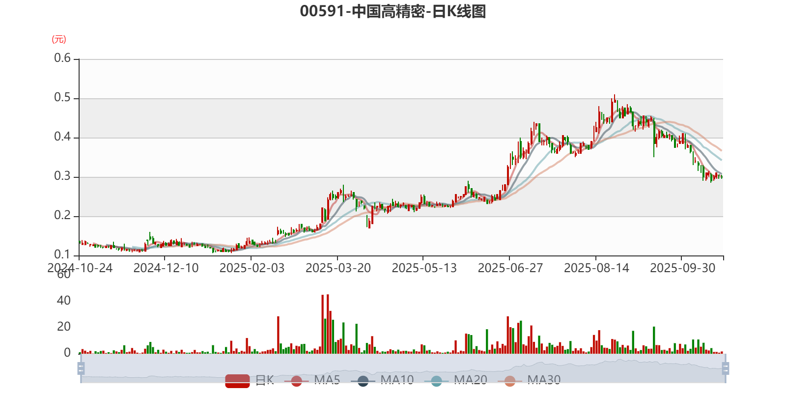 以10月23日收盘价计算,中国高精密目前市盈率(TTM)约16.27倍,市净率(TTM)约0.17倍,市销率(TTM)约1.47倍。