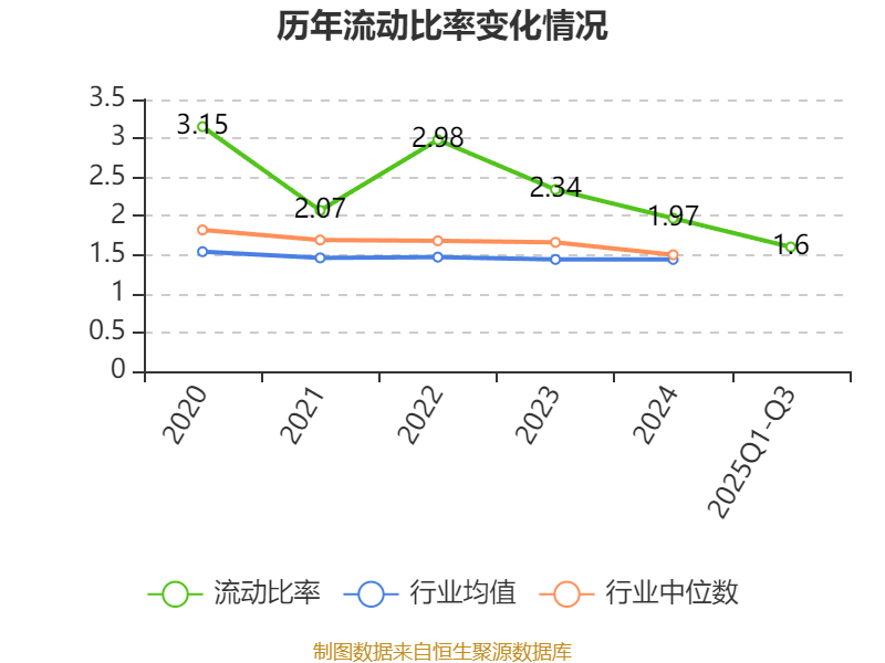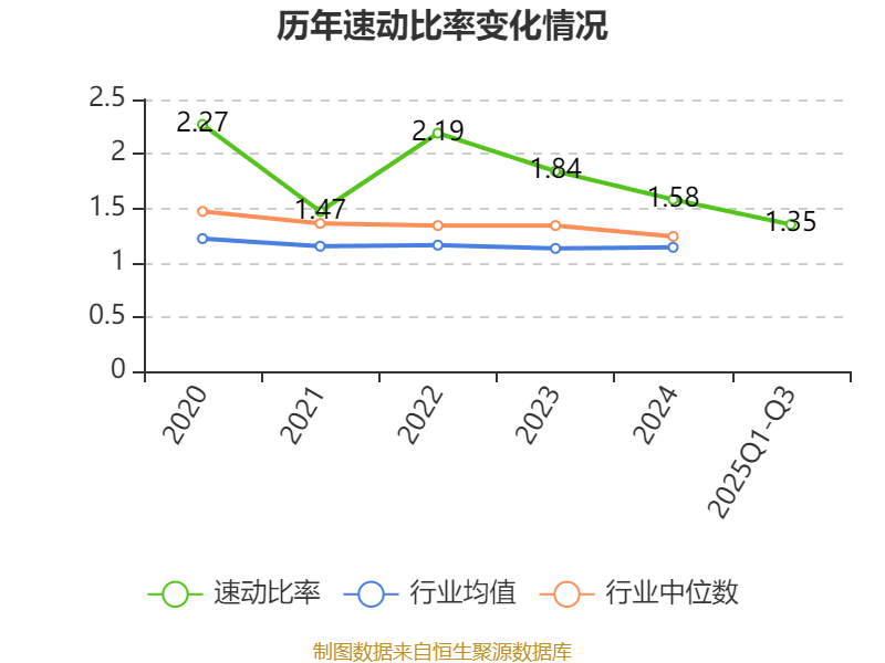 2025年前三季度,公司流动比率为1.6,速动比率为1.35。