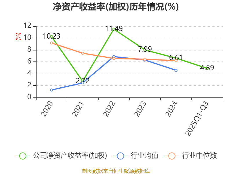 盈利能力方面, 2025年前三季度公司加权平均净资产收益率为4.89%,同比下降1.08个百分点。公司2025年前三季度投入资本回报率为3.69%,较上年同期下降1.2个百分点。