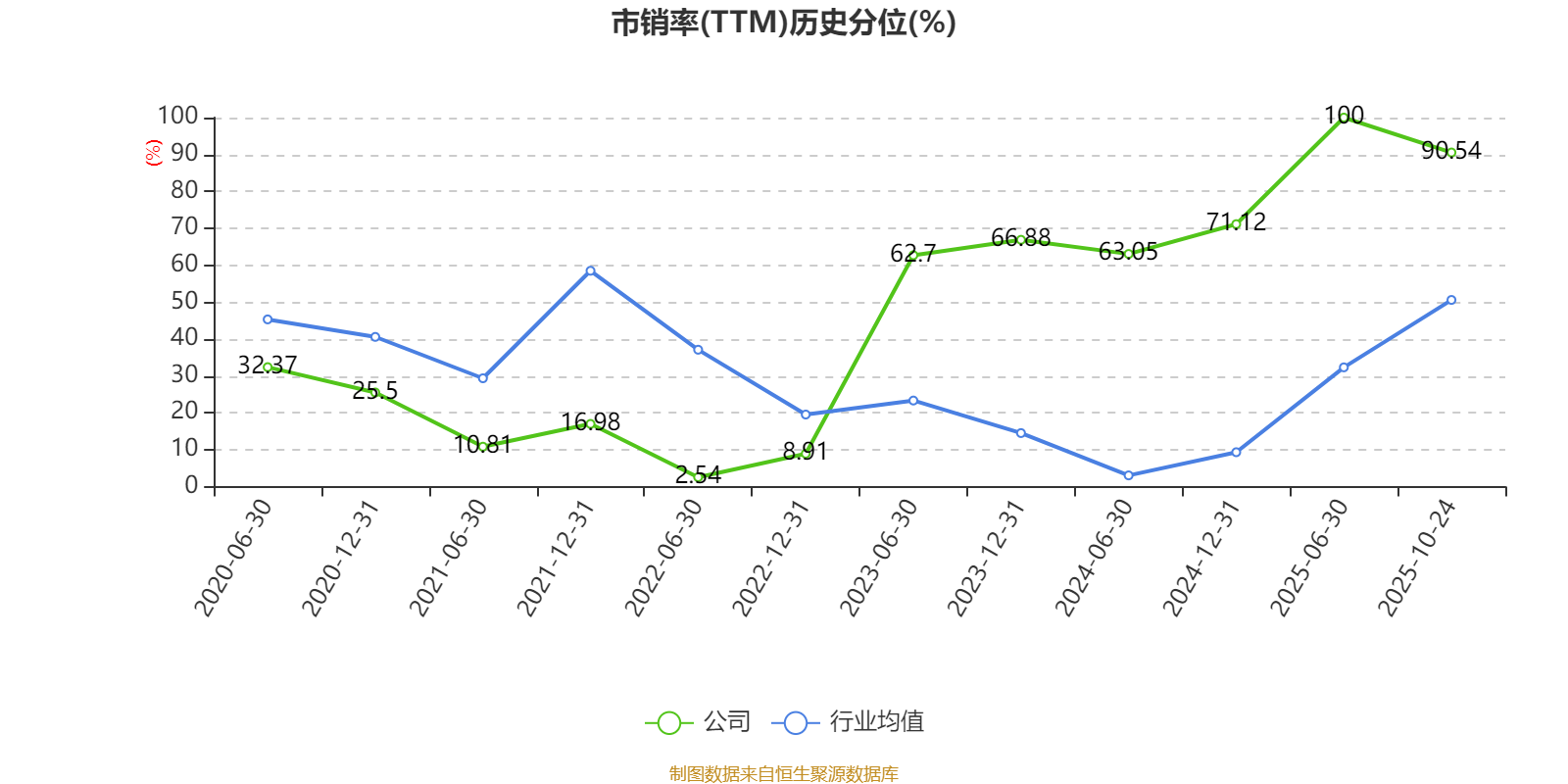 以10月24日收盘价计算,金龙羽目前市盈率(TTM)约为110.24倍,市净率(LF)约6.18倍,市销率(TTM)约2.74倍。