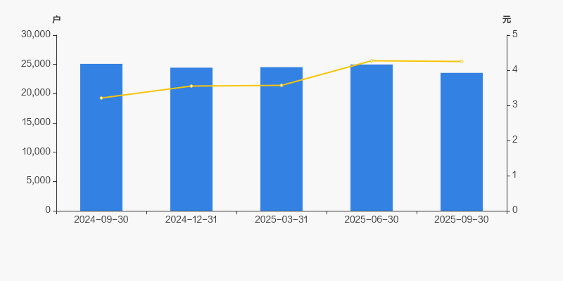 2024年9月30日至今,公司股东户数有所下降,区间跌幅为6.13%。2024年9月30日至2025年9月30日区间股价下降24.26%。