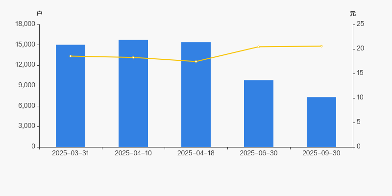 截至2025年9月30日,公司最新流通股本为7750.5万股。户均持有流通股数量由上期的7889股上升至1.06万股,户均流通市值21.77万元。