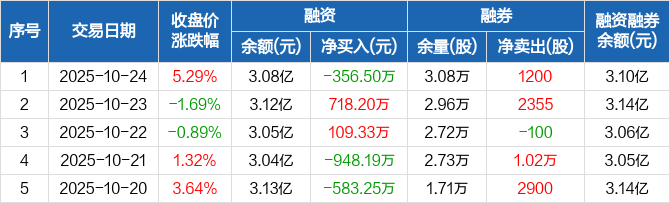 联瑞新材融资融券信息显示,2025年10月24日融资净偿还356.5万元;融资余额3.08亿元,较前一日下降1.14%。