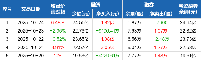 融资方面,当日融资买入4.78亿元,融资偿还2.96亿元,融资净买入1.82亿元,净买入额两市排名第19。融券方面,融券卖出3600股,融券偿还1.12万股,融券余量6.87万股,融券余额794.38万元。融资融券余额合计24.64亿元。
