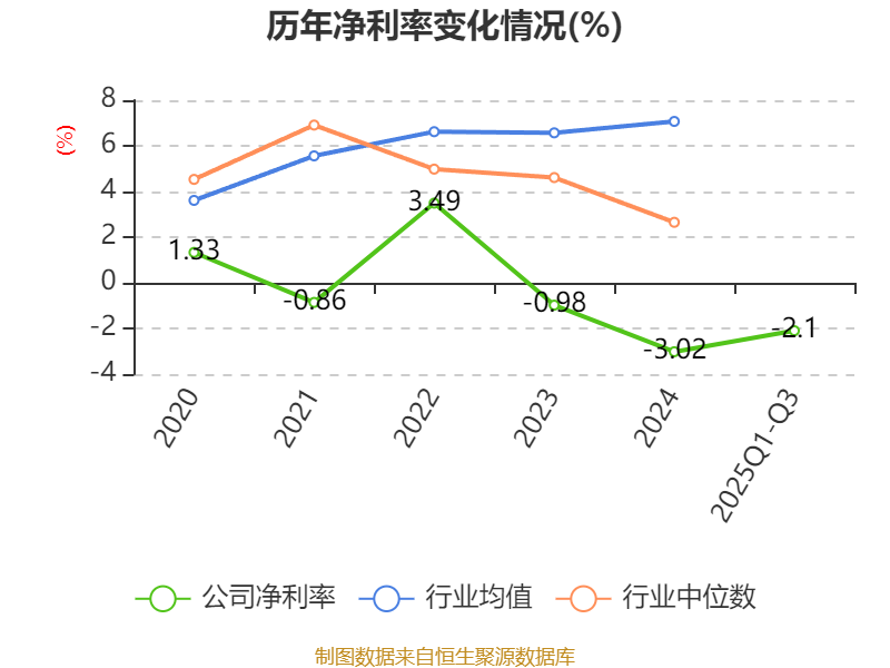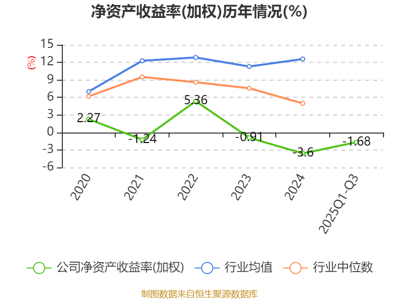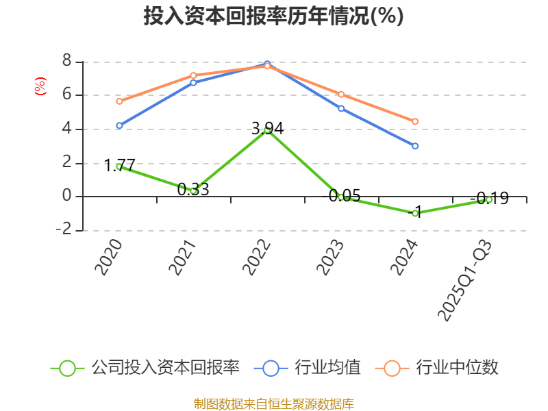 盈利能力方面, 2025年前三季度公司加权平均净资产收益率为-1.68%,同比下降1.01个百分点。公司2025年前三季度投入资本回报率为-0.19%,较上年同期下降0.39个百分点。