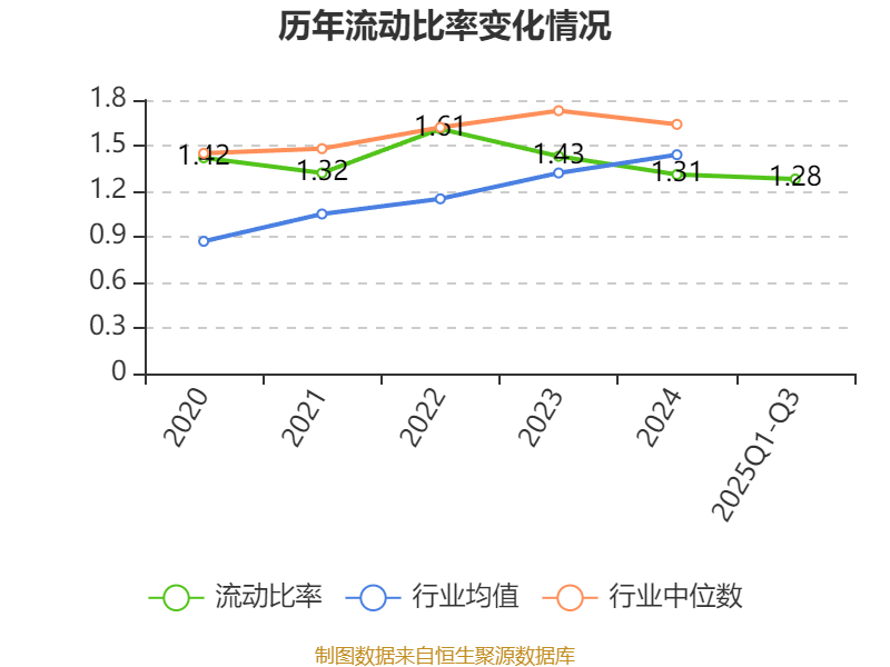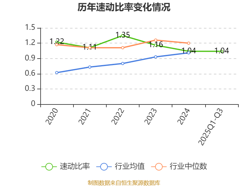 2025年前三季度,公司流动比率为1.28,速动比率为1.04。