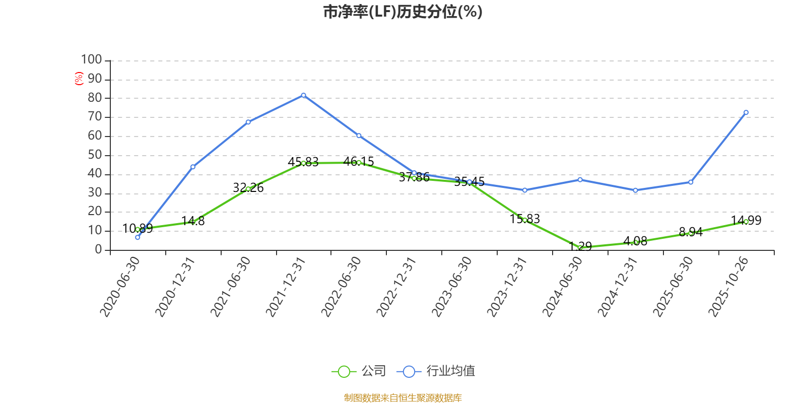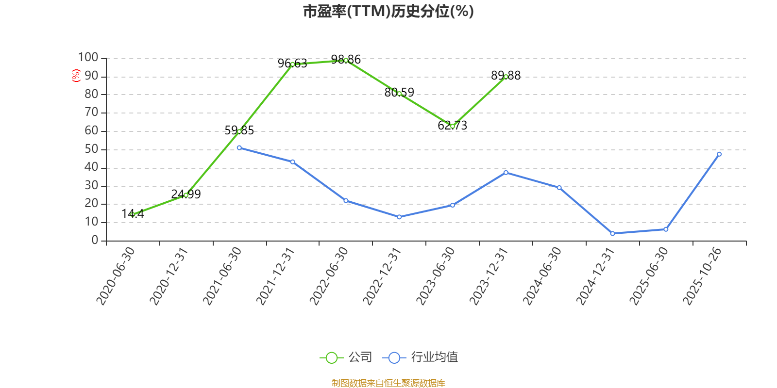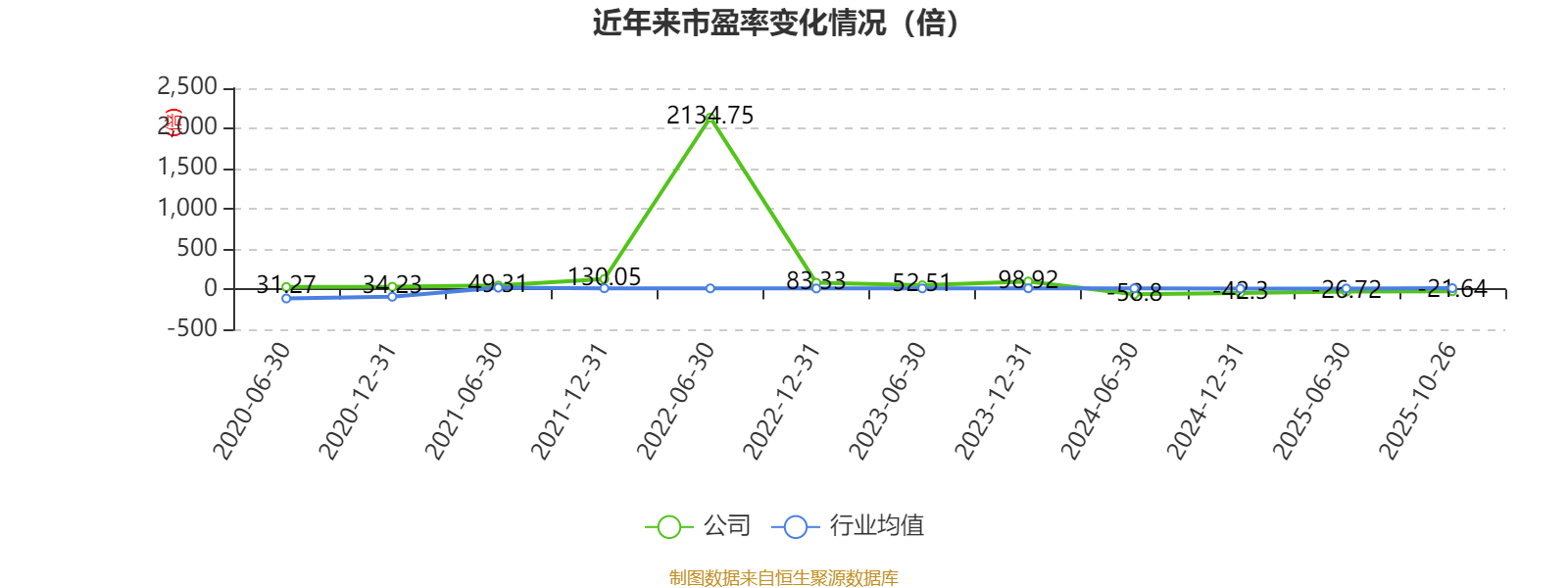 市盈率、市净率为负时,不显示当期分位数,会导致折线图中断。