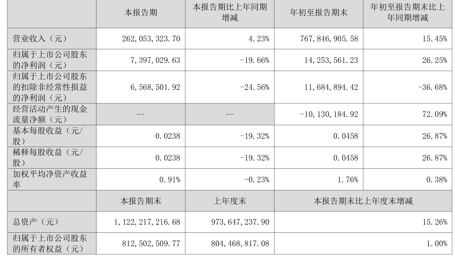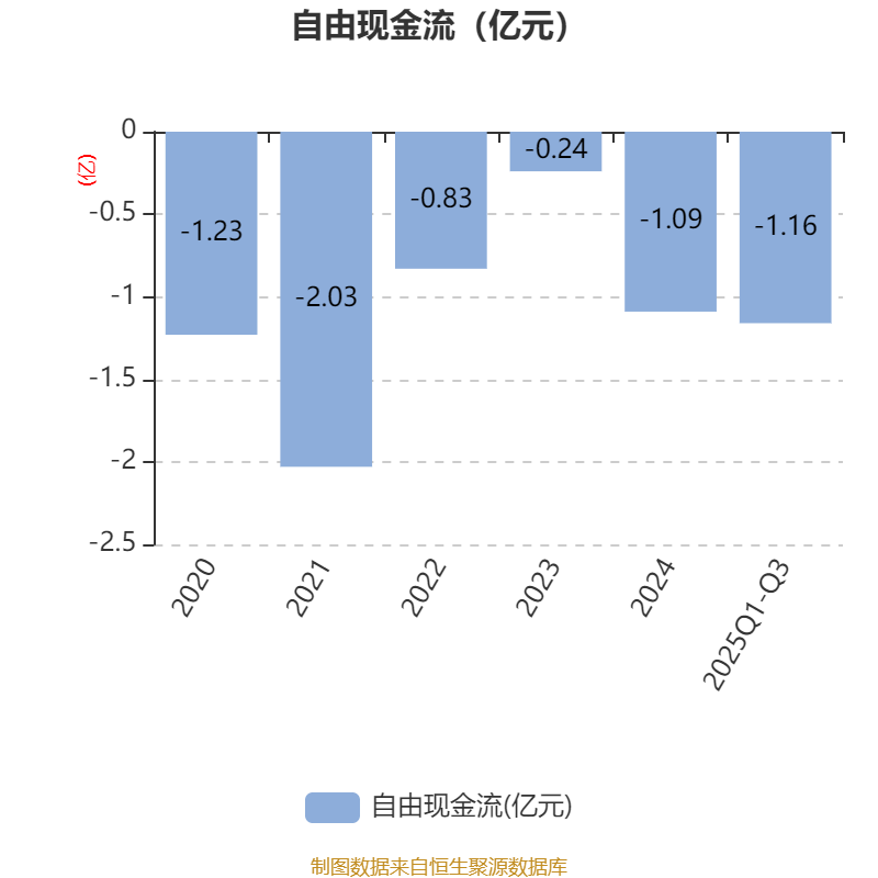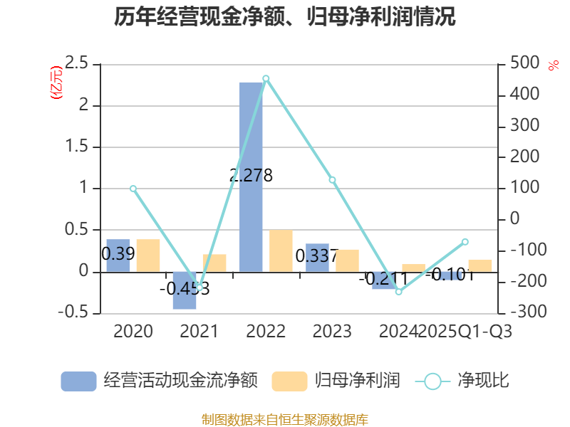 2025年前三季度,公司经营活动现金流净额为-1013.02万元,同比增加2616.29万元;筹资活动现金流净额1.57亿元,同比增加1.39亿元;投资活动现金流净额-9670.42万元,上年同期为-9391.34万元。