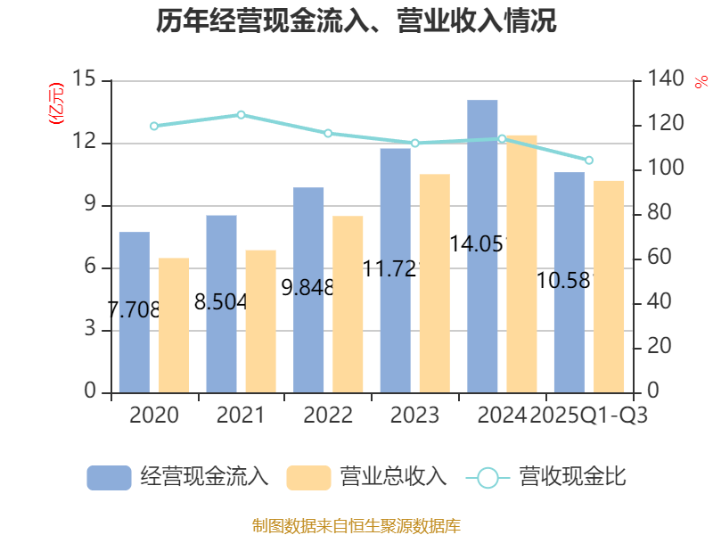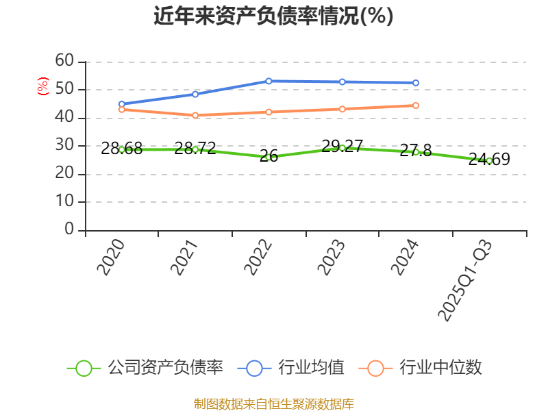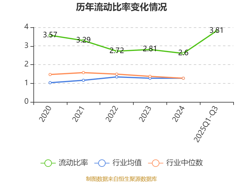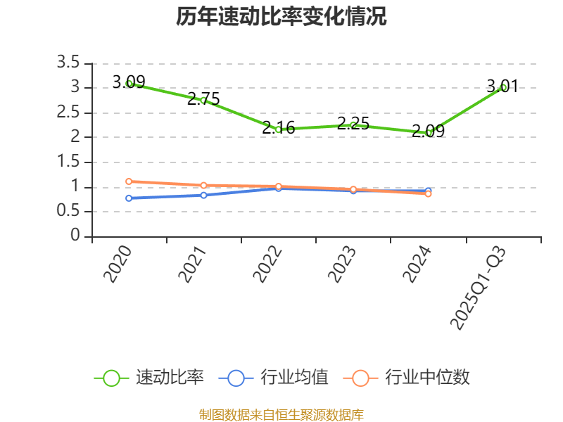 2025年前三季度,公司流动比率为3.81,速动比率为3.01。