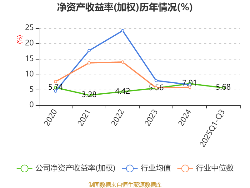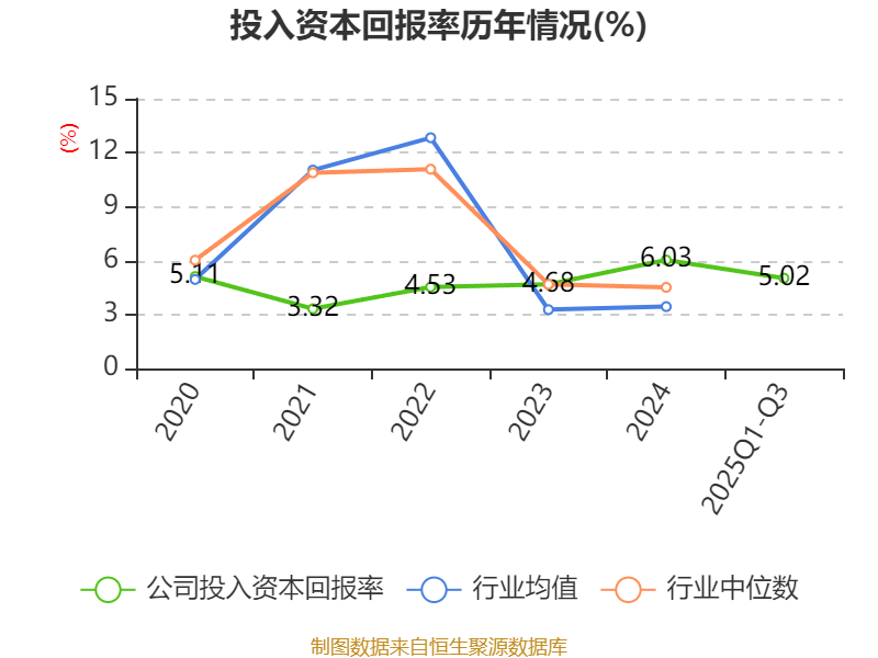 盈利能力方面, 2025年前三季度公司加权平均净资产收益率为5.68%,同比下降1.05个百分点。公司2025年前三季度投入资本回报率为5.02%,较上年同期下降0.64个百分点。