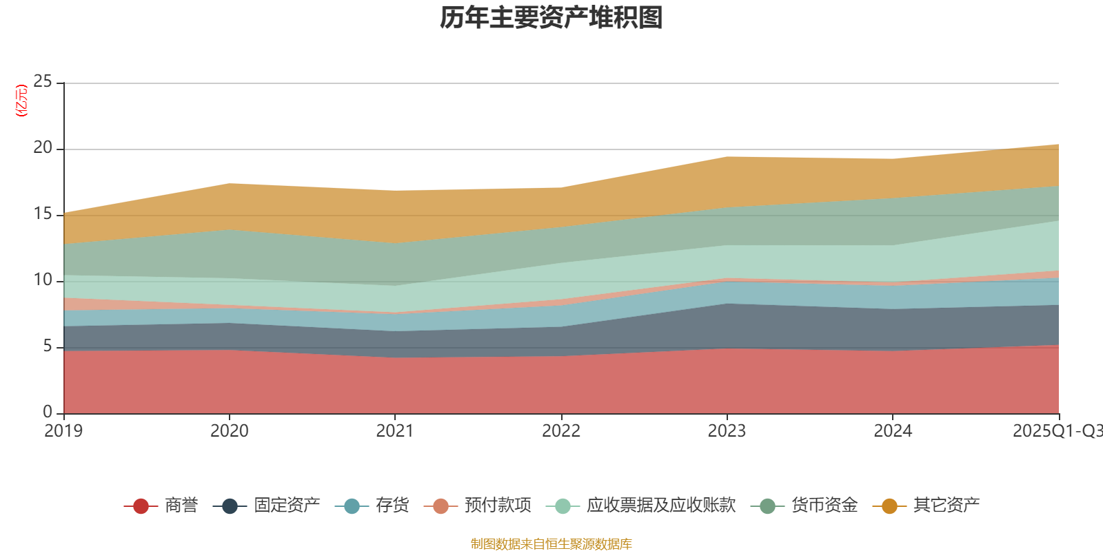 资产重大变化方面,截至2025年三季度末,公司货币资金较上年末减少26.52%,占公司总资产比重下降5.67个百分点;应收票据及应收账款较上年末增加34.75%,占公司总资产比重上升3.98个百分点;固定资产较上年末减少5.01%,占公司总资产比重下降1.68个百分点;预付款项较上年末增加109.31%,占公司总资产比重上升1.33个百分点。