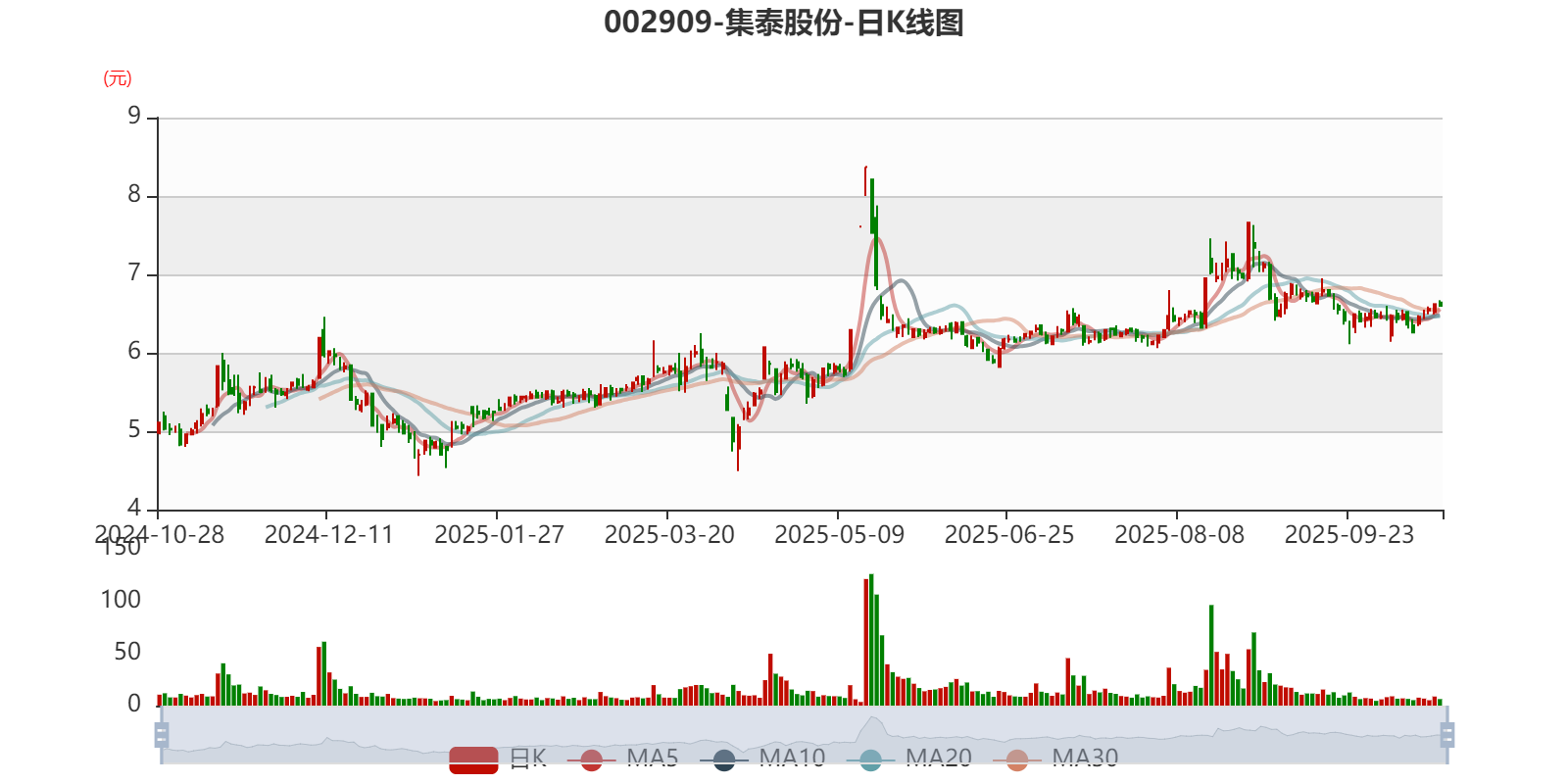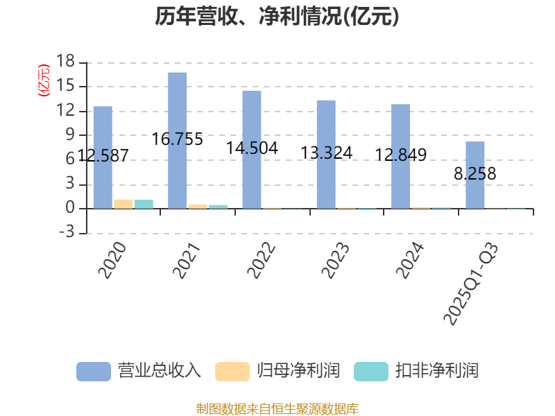 中证智能财讯集泰股份(002909)10月27日披露2025年第三季度报告。前三季度公司实现营业总收入8.26亿元,同比下降12.57%;归母净利润亏损431.11万元,上年同期盈利1443.06万元;扣非净利润亏损704.79万元,上年同期盈利1098.9万元;经营活动产生的现金流量净额为-2406.62万元,上年同期为7184.79万元;报告期内,集泰股份基本每股收益为-0.0112元,加权平均净资产收益率为-0.47%。