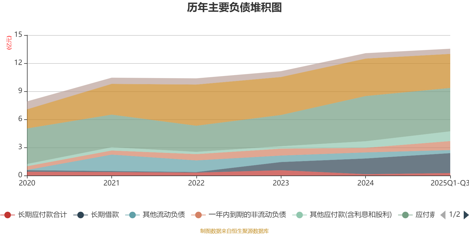 负债重大变化方面,截至2025年三季度末,公司一年内到期的非流动负债较上年末增加95.16%,占公司总资产比重上升2.08个百分点;长期借款较上年末增加26.98%,占公司总资产比重上升2.01个百分点;短期借款较上年末减少9.2%,占公司总资产比重下降1.62个百分点;其他应付款(含利息和股利)较上年末增加48.52%,占公司总资产比重上升1.52个百分点。