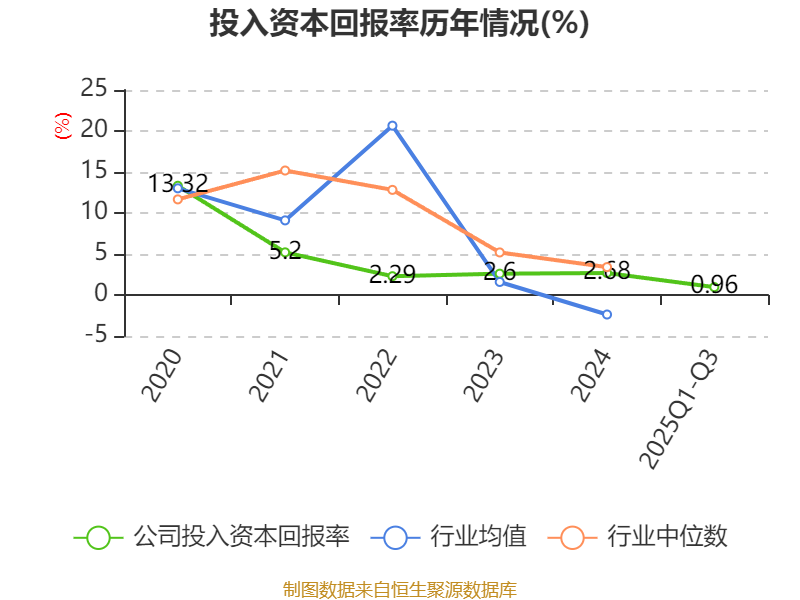 盈利能力方面, 2025年前三季度公司加权平均净资产收益率为-0.47%,同比下降1.94个百分点。公司2025年前三季度投入资本回报率为0.96%,较上年同期下降1.27个百分点。