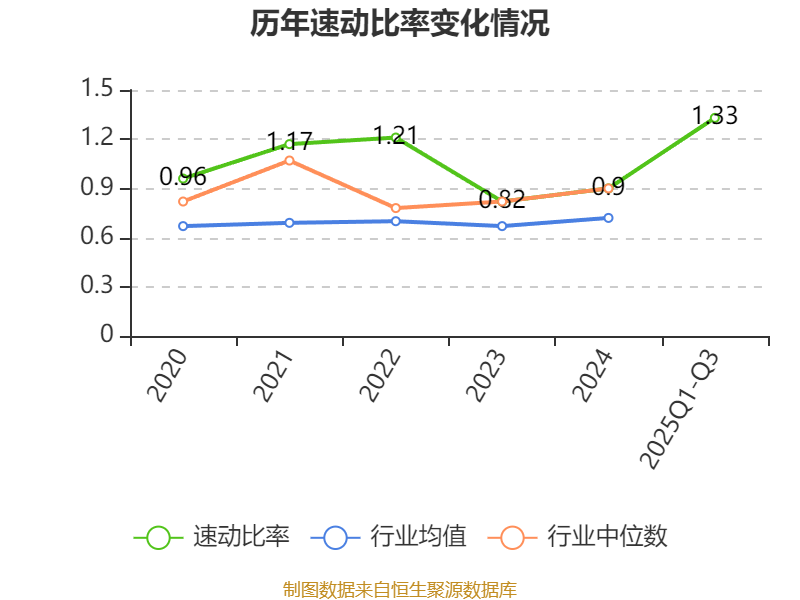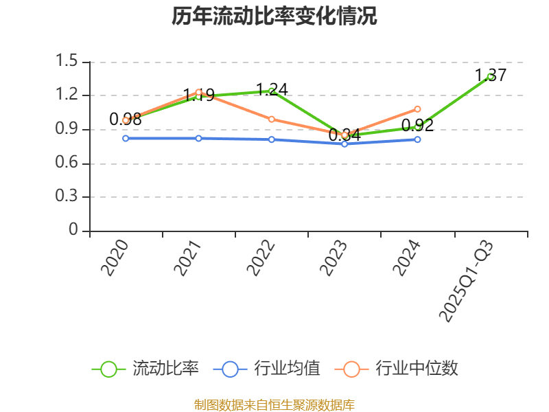2025年前三季度,公司流动比率为1.37,速动比率为1.33。