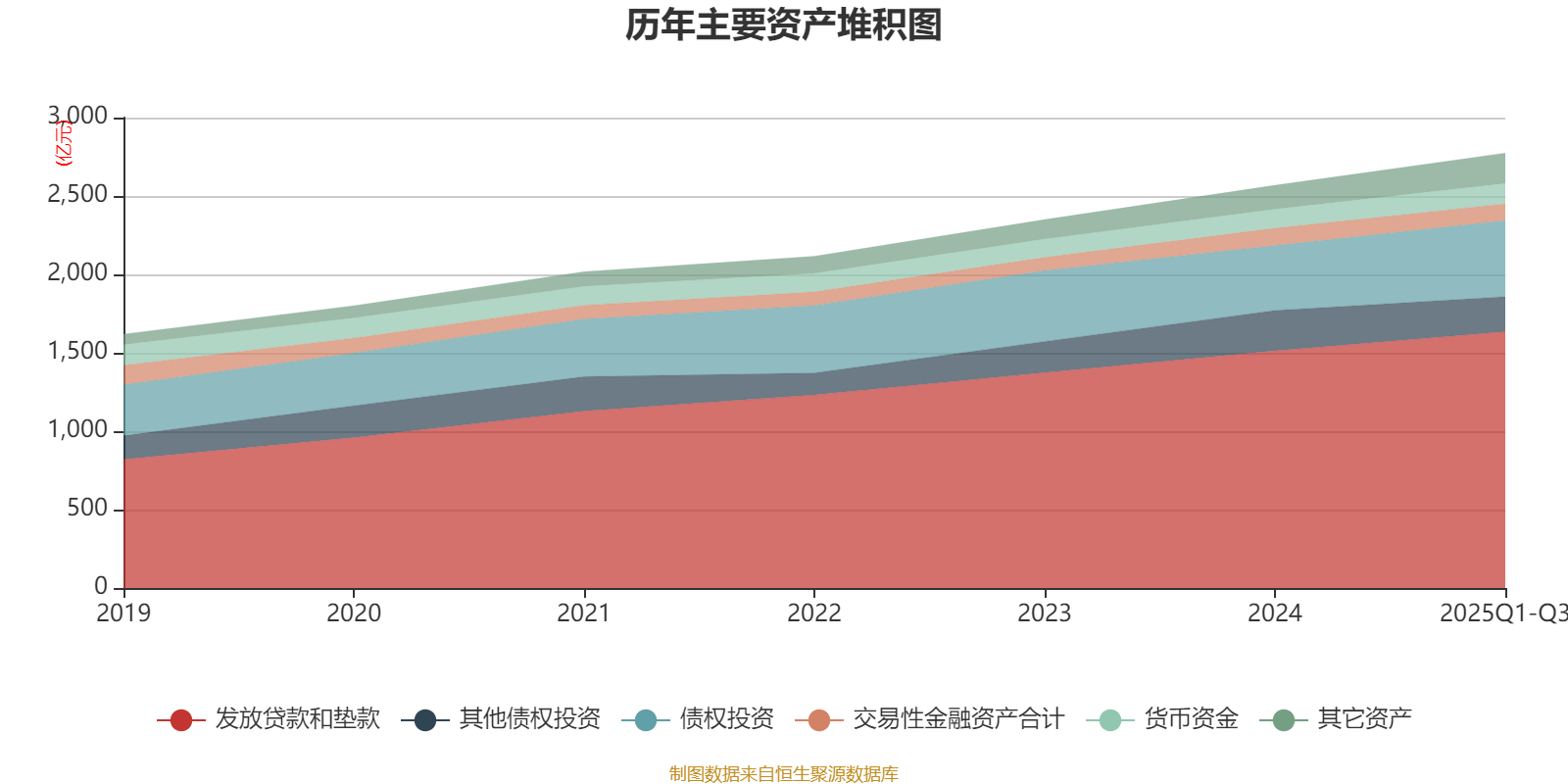 资产重大变化方面,截至2025年三季度末,公司其他债权投资较上年末减少13.27%,占公司总资产比重下降1.98个百分点;债权投资较上年末增加17.39%,占公司总资产比重上升1.4个百分点;拆出资金较上年末增加120.09%,占公司总资产比重上升0.6个百分点;存放同业款项较上年末增加37.63%,占公司总资产比重上升0.51个百分点。