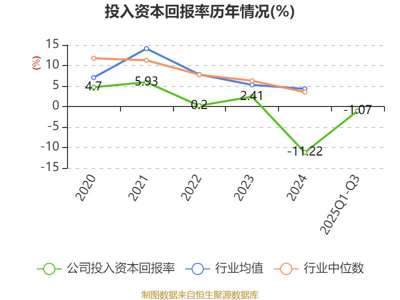 盈利能力方面, 2025年前三季度公司加权平均净资产收益率为-1.06%,同比下降0.76个百分点。公司2025年前三季度投入资本回报率为-1.07%,较上年同期下降0.69个百分点。