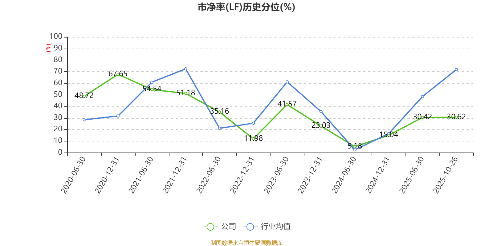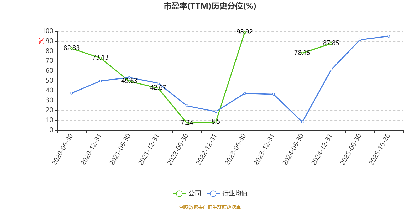 市盈率、市净率为负时,不显示当期分位数,会导致折线图中断。