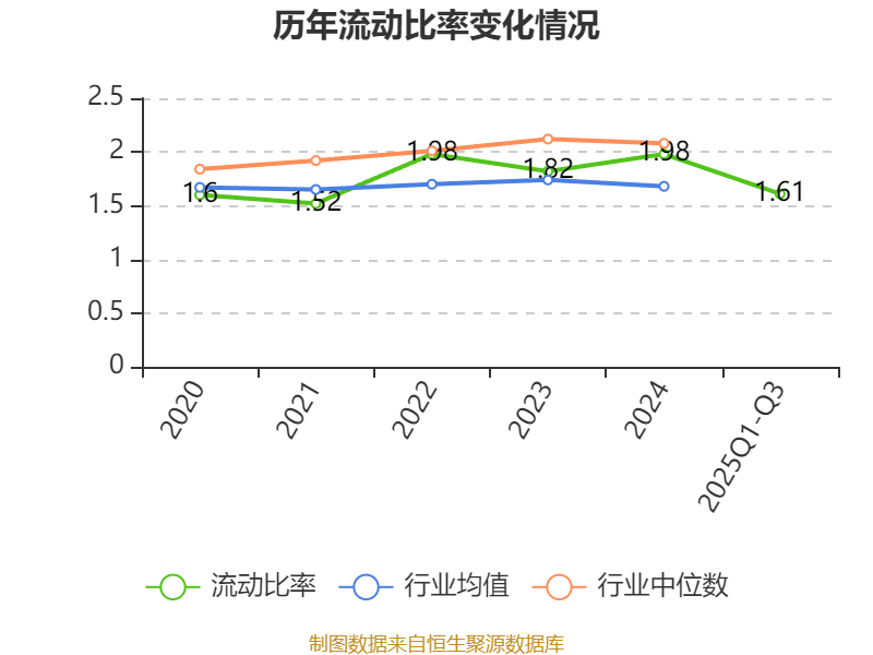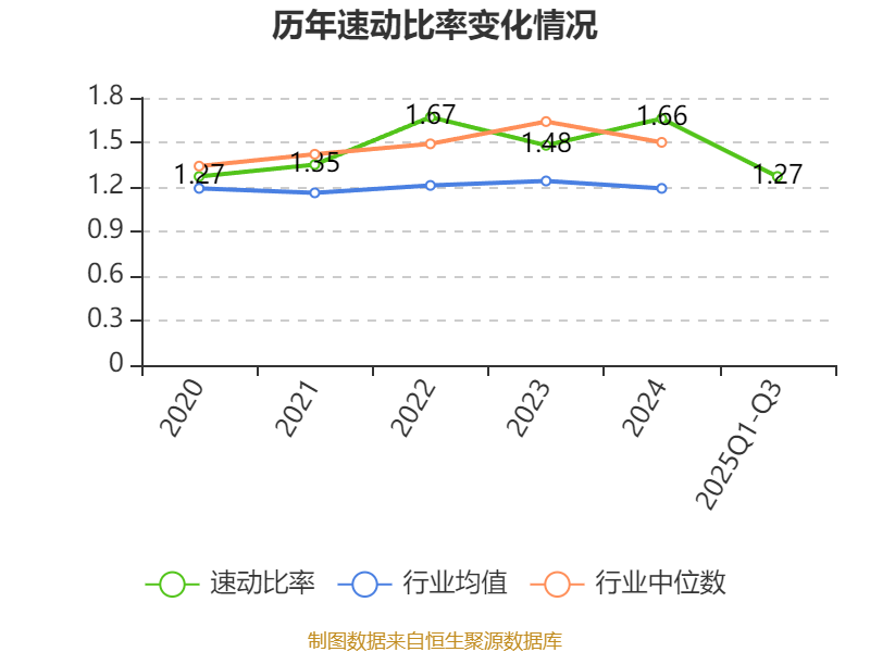 2025年前三季度,公司流动比率为1.61,速动比率为1.27。