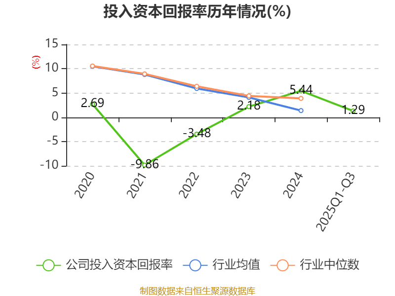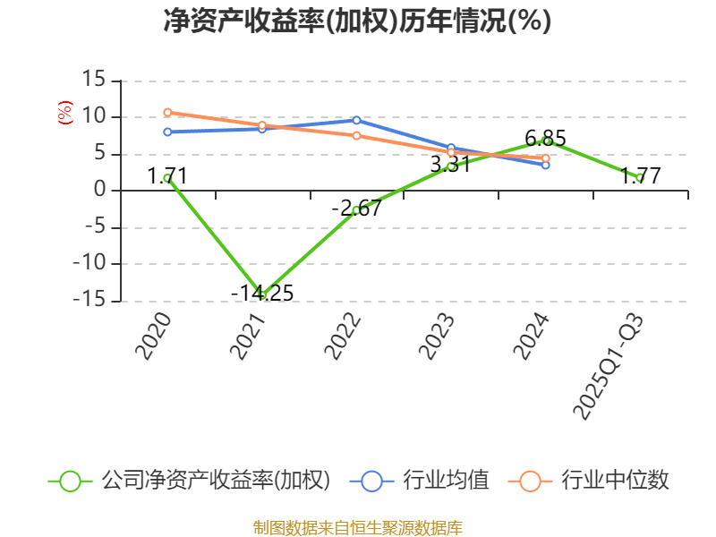 盈利能力方面, 2025年前三季度公司加权平均净资产收益率为1.77%,同比下降0.48个百分点。公司2025年前三季度投入资本回报率为1.29%,较上年同期下降0.28个百分点。