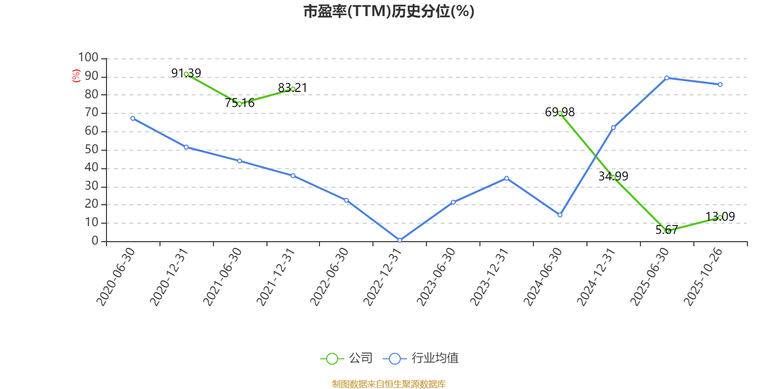 市盈率、市净率为负时,不显示当期分位数,会导致折线图中断。