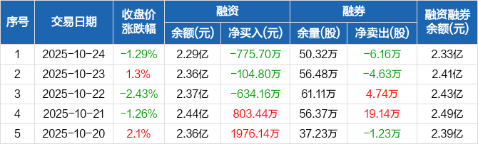 陕天然气融资融券信息显示,2025年10月24日融资净偿还775.7万元;融资余额2.29亿元,较前一日下降3.28%
