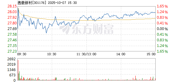 以下是逸豪新材在北京时间10月27日09:30分盘口异动快照:10月27日,
