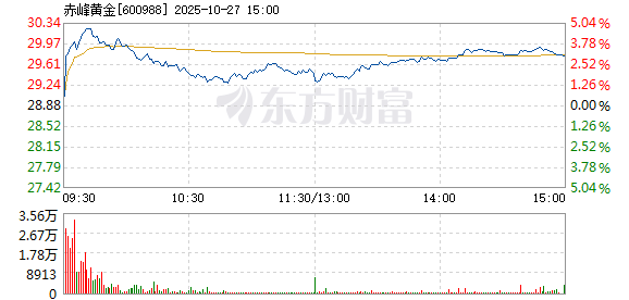 以下是赤峰黄金在北京时间10月27日09:30分盘口异动快照:10月27日,
