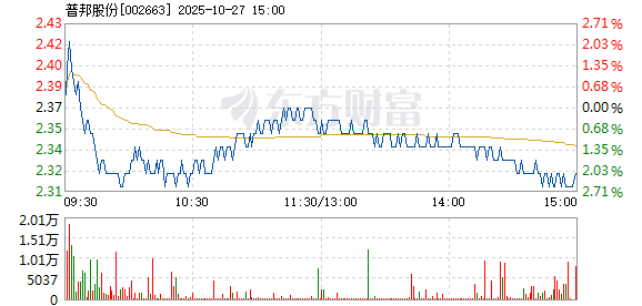 普邦股份盘中快速回调,5分钟内跌幅超过2%,截至9点36分,报2.37元,成交1705.52万元,换手率0.55%。