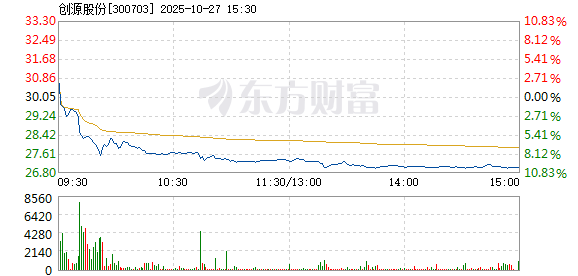 以下是创源股份在北京时间10月27日09:40分盘口异动快照:10月27日,