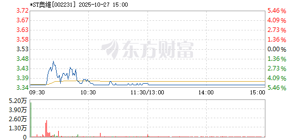 以下是*ST奥维在北京时间10月27日09:46分盘口异动快照:10月27日9点46分,