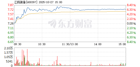 以下是江钨装备在北京时间10月27日09:49分盘口异动快照:10月27日,