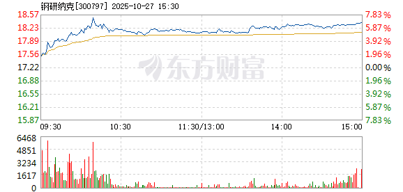 钢研纳克10月27日盘中涨幅达5%