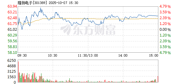 以下是隆扬电子在北京时间10月27日09:54分盘口异动快照:10月27日,