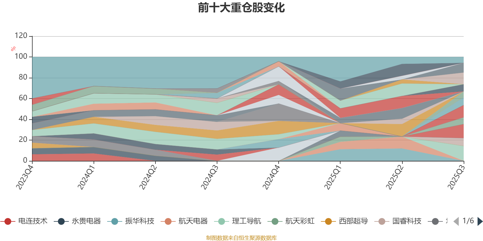 该基金持股集中度较高,近2年前十大重仓股集中度长期超过60%。截至2025年三季度末,基金十大重仓股分别是理工导航、中航沈飞、中航高科、中航成飞、高德红外、国睿科技、洪都航空、金天钛业、西部材料、中航西飞。