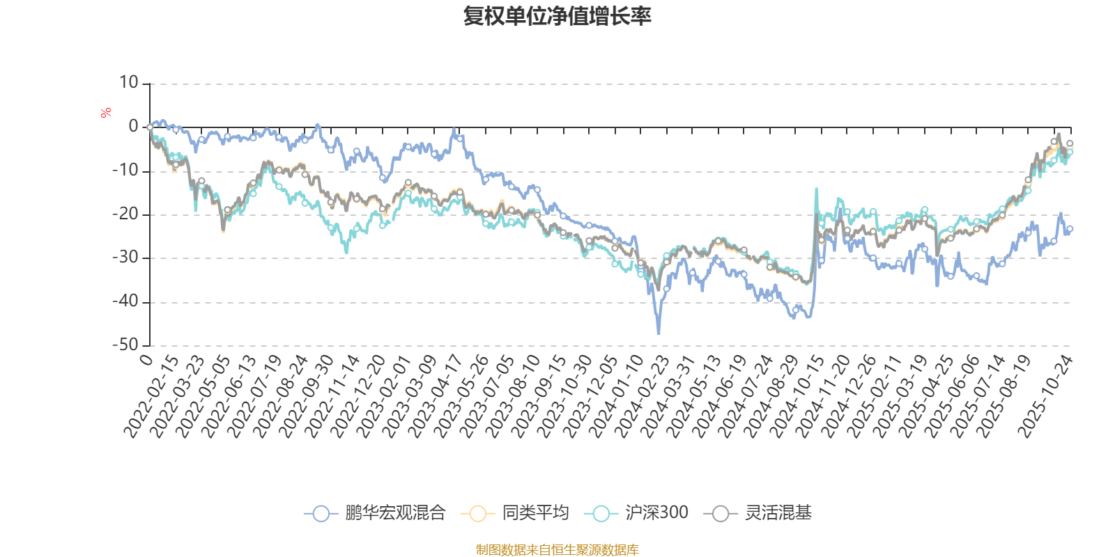 截至10月24日,鹏华宏观混合近三个月复权单位净值增长率为7.95%,位于同类可比基金782/1287;近半年复权单位净值增长率为16.38%,位于同类可比基金835/1287;近一年复权单位净值增长率为3.67%,位于同类可比基金1177/1287;近三年复权单位净值增长率为-18.59%,位于同类可比基金1206/1286。