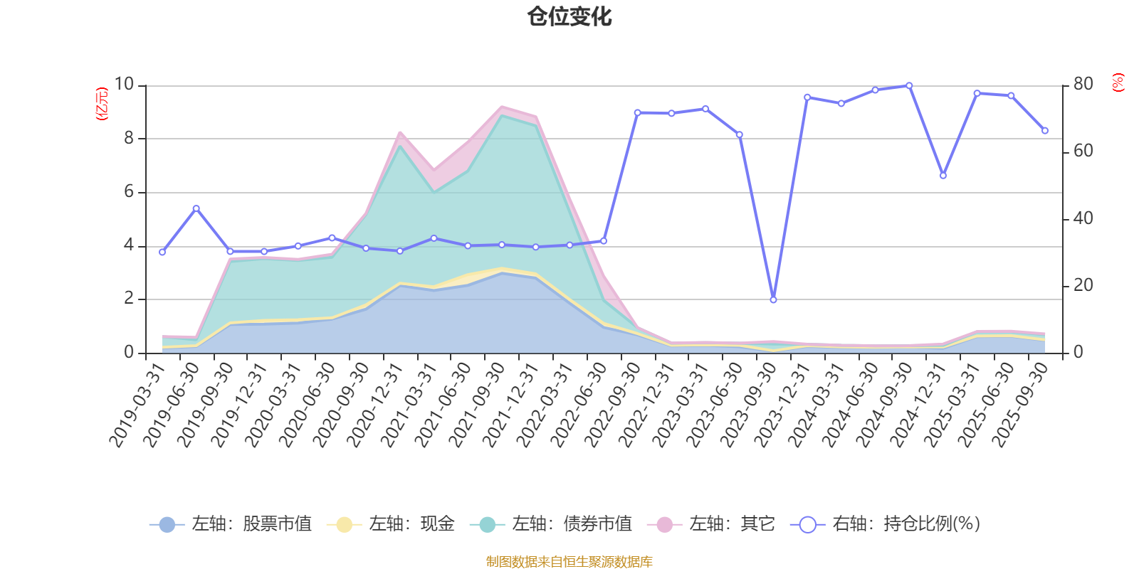 据定期报告数据统计,近三年平均股票仓位为67.47%,同类平均为72.16%。2024年三季度末基金达到79.94%的最高仓位,2023年三季度末最低,为15.94%。