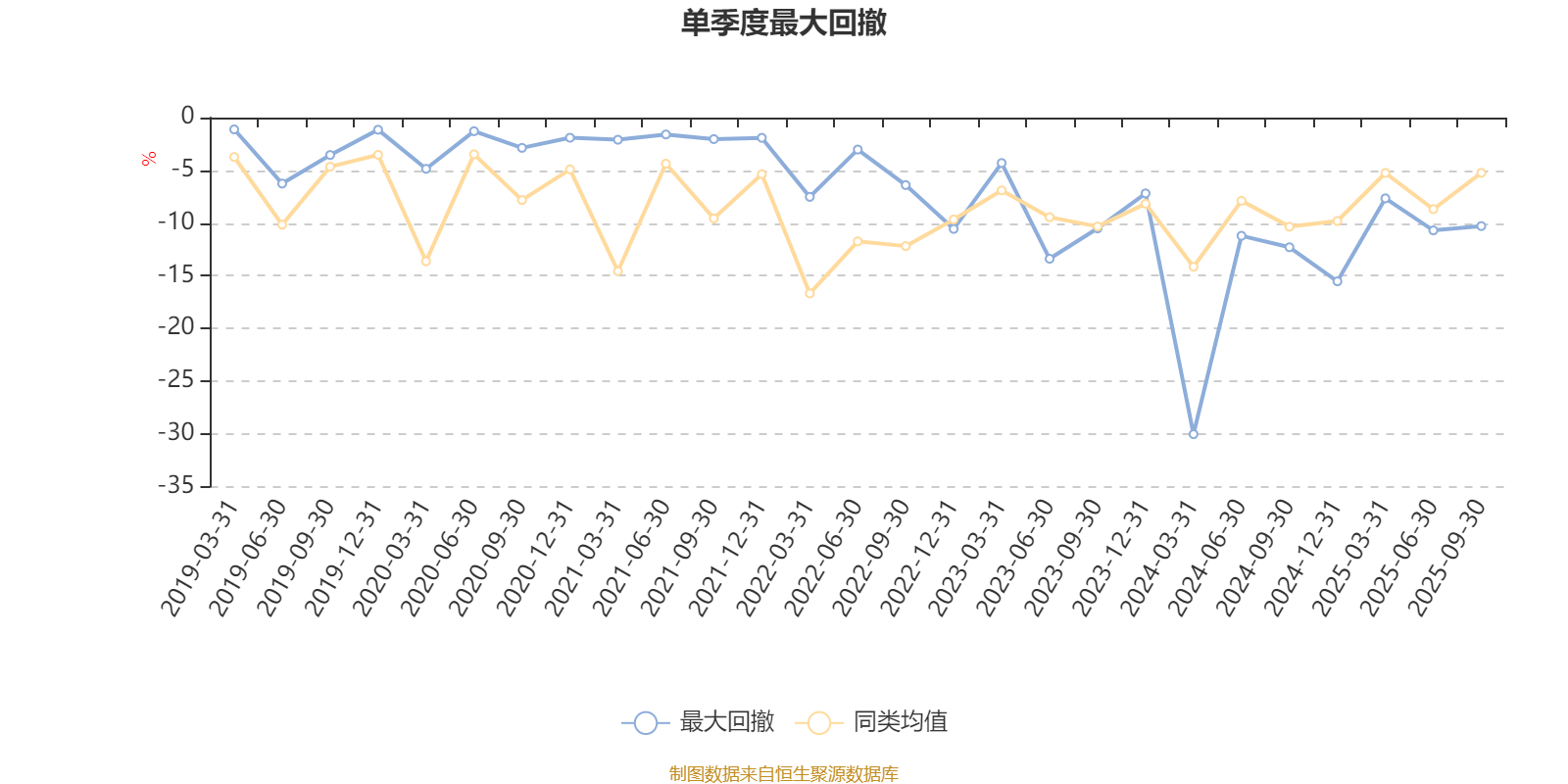 截至10月24日,基金近三年最大回撤为47.46%,同类可比基金排名1136/1283。单季度最大回撤出现在2024年一季度,为30.03%。