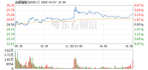 以下是合锻智能在北京时间10月27日09:59分盘口异动快照:10月27日,