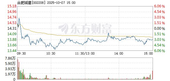 以下是合肥城建在北京时间10月27日10:20分盘口异动快照:10月27日,
