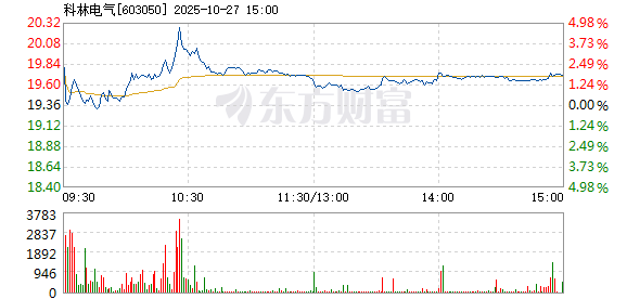 以下是科林电气在北京时间10月27日10:25分盘口异动快照:10月27日,