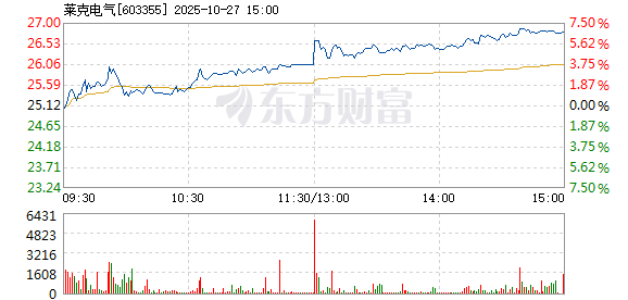 莱克电气10月27日盘中涨幅达5%